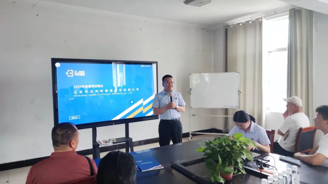 活動期間,集團(tuán)公司周總及事業(yè)中心領(lǐng)導(dǎo)組成面試團(tuán)隊參與人員選拔,行政副總李付玉作招聘會宣講,他回顧了中杰特裝四十年砥礪前行的輝煌歷程,詳細(xì)介紹了公司規(guī)模實力,發(fā)展前景和規(guī)劃、人才需求、發(fā)展空間及晉升機制,向在場求職者發(fā)出了誠摯的邀請。李付玉講到,人才是企業(yè)發(fā)展的核心動力,中杰特裝集團(tuán)始終高度重視人才引進(jìn)和培養(yǎng)工作,致力于為員工打造良好的職業(yè)發(fā)展平臺,助力每一位員工實現(xiàn)夢想,創(chuàng)造價值。