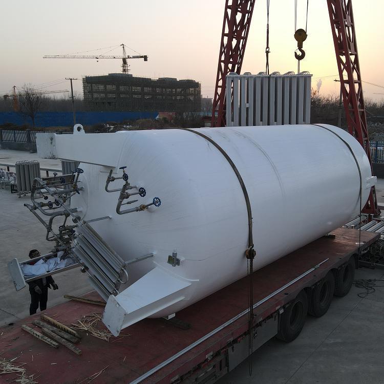 低溫二氧化碳儲(chǔ)罐一般為雙層圓筒形結(jié)構(gòu),內(nèi)筒為|6MnDR優(yōu)質(zhì)合金鋼,外筒為Q245R或Q345R壓力容器專用鋼板,管路采用奧氏體不銹鋼制作,夾層采用高真空 珠光砂填充或多層包扎保溫;低溫二氧化碳儲(chǔ)罐設(shè)置有供操作的各種閥門,閥門布置合理便于操作,低溫二氧化碳儲(chǔ)罐設(shè)置有壓力表、液位計(jì),供調(diào)查低溫二氧化碳儲(chǔ)罐內(nèi)壓力、液面之用。