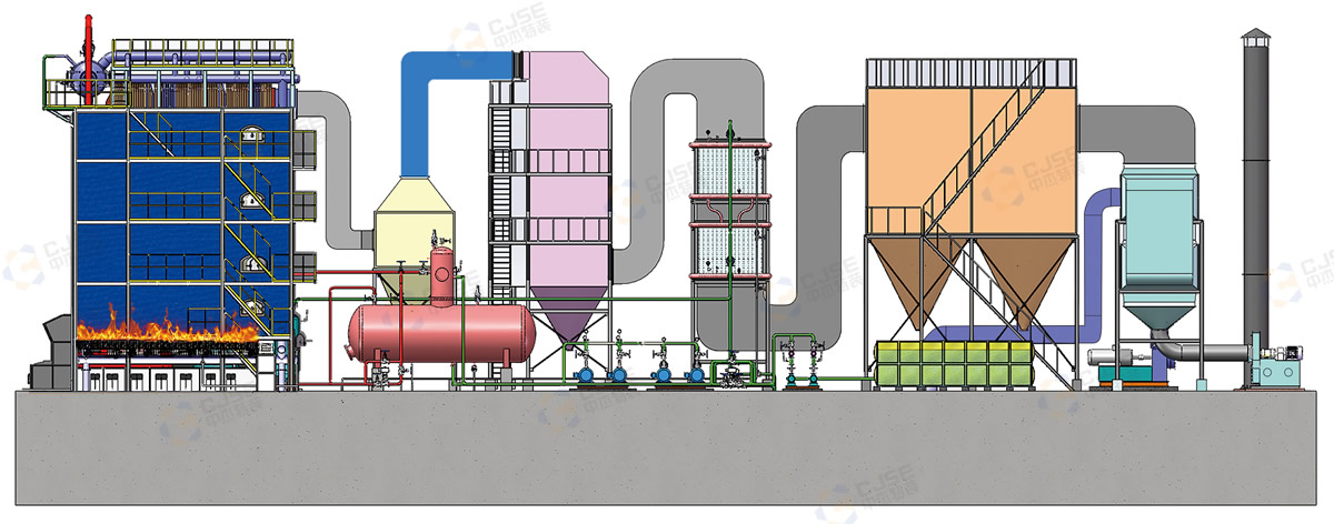 角管式鏈條爐排生物質(zhì)鍋爐流程圖