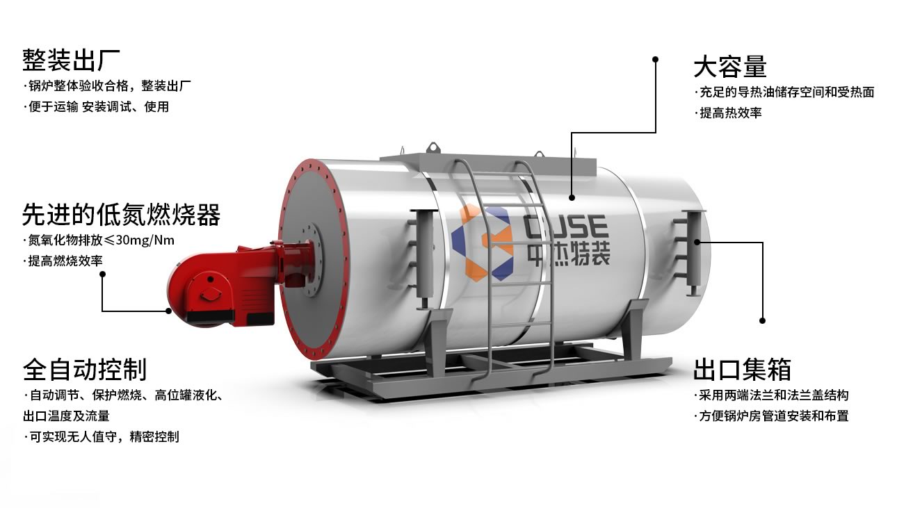 ●系統(tǒng)具有高效率,低能耗經(jīng)濟(jì)設(shè)計(jì),使導(dǎo)熱油爐整體熱效率大于94%;